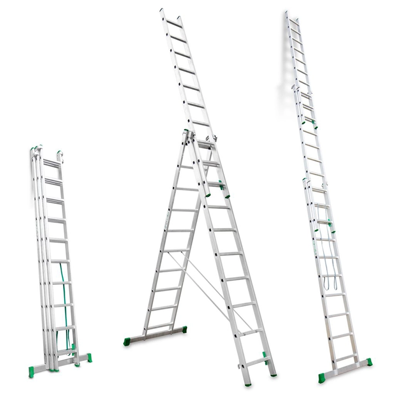 سلم ES-TRIPLE هو سلم ثلاثي مصنوع من الألومنيوم. يتميز هذا السلم متعدد الاستخدامات بإمكانية استخدامه كسلّم مزدوج، حيث يمكن تمديد أقسامه الثلاثة، كما يمكن استخدامه كسلّم مائل. يمكن وضعه على الأسطح غير المستوية، مما يجعله مثاليًا للعمل على الأرصفة أو السلالم. تتميز درجاته الأمامية بعمق 3 سم وهي مانعة للانزلاق، وقاعدته الثابتة مزودة بقدمين مطاطيتين عريضتين لتوفير أقصى درجات الأمان والثبات، خاصة على الأراضي الوعرة. كما يتميز بآلية قفل أمان عملية وموثوقة مزودة بخطاف زنبركي.