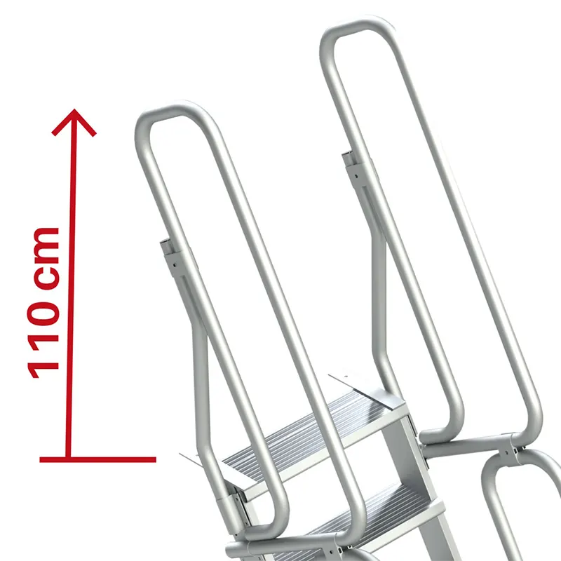 يتوافق ارتفاع الوصول لهذا المنتج مع المعيار الأوروبي EN 14122-3، وهو مزود بشهادة مطابقة ودليل استخدام. تبلغ حمولته القصوى 150 كجم.