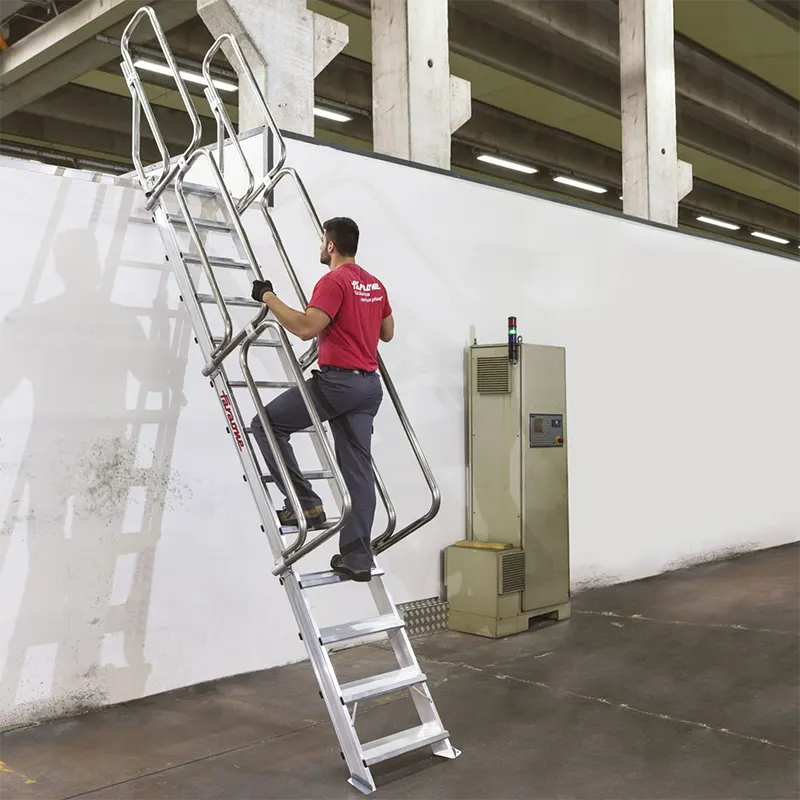 يوفر السلم المصنوع من الألومنيوم الثابت SG60 وصولاً مريحاً وآمناً إلى الميزانين والعليات في الهياكل الصناعية.