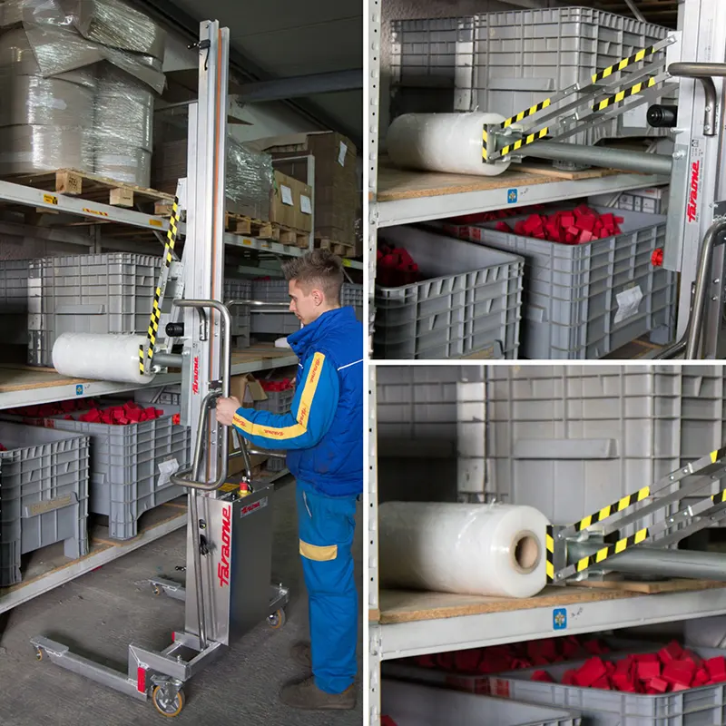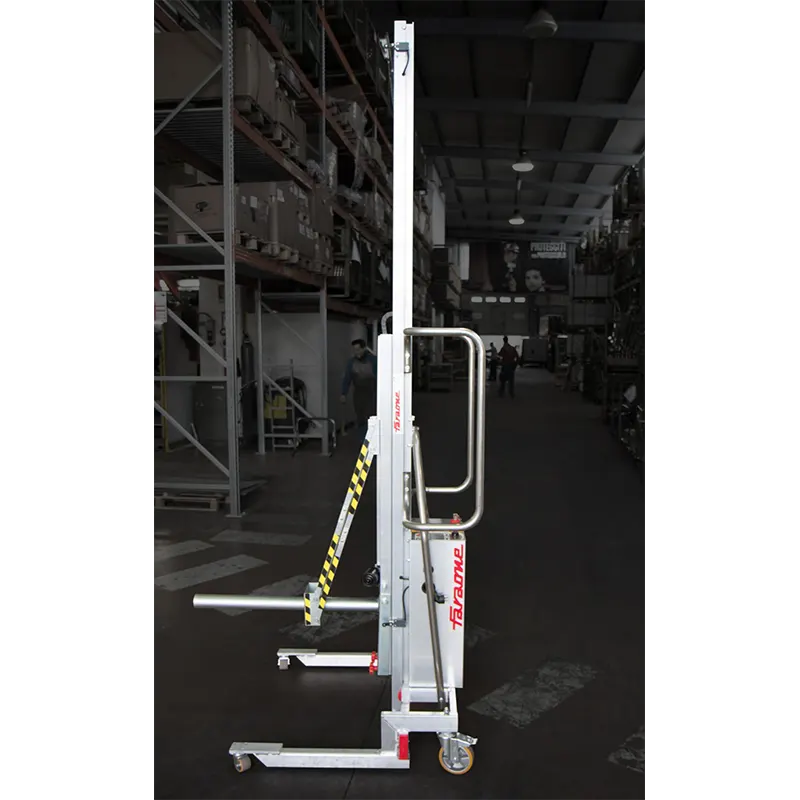 Ascenseur de matériaux en aluminium avec max. capacité de 150 kg. compact, léger et facile à déplacer. confortable et sûr, idéal pour monter des volets. base spéciale basse pour accès facile/palette.