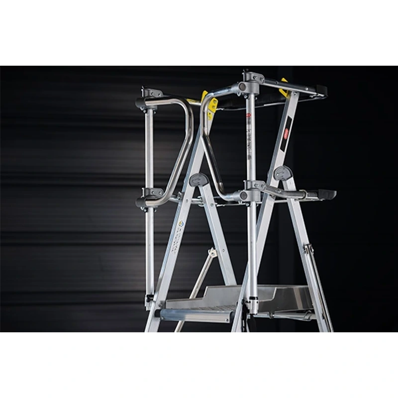 La RolGuard est notre plate-forme individuelle roulante la plus avancée. Grâce à sa plate-forme très spacieuse (60 x 40 cm), son utilisation est toujours sûre et confortable. Son cadre de sécurité intégral garantit une protection anti-chute à 360 degrés, vous permettant de travailler en toute sécurité, les mains libres. De plus, le stabilisateur contribue à une stabilité accrue pendant les travaux. En résumé, c’est la combinaison parfaite de confort et de sécurité.
