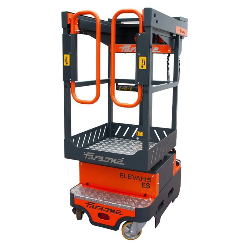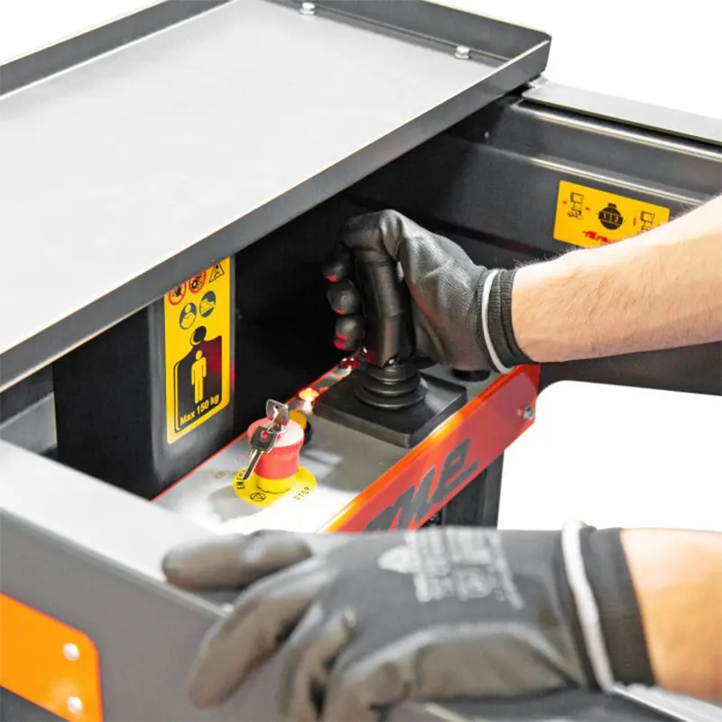 Si vous cherchez une solution idéale pour effectuer des tâches de maintenance à l’intérieur des magasins, des centres commerciaux et des industries, ELEVAH E5 ES Move est le meilleur atout. Le panier peut être étendu manuellement de 60 cm, ce qui permet d’effectuer l’entretien dans des endroits situés à proximité d’obstacles bas ou difficiles à atteindre, comme les machines de travail telles que les CNC. Son rayon de braquage nul permet à l’opérateur de travailler de manière rapide et confortable aussi dans les surfaces plus étroites et de conduire facilement avec peu de marge de manœuvre. Sa manette de commande pour une conduite avec une seule main. Son système automoteur en hauteur. Elle peut être déplacée sans devoir abaisser le panier, ce qui permet de gagner du temps lors des opérations. Son panier extensible peut être étendu manuellement de 60 cm. Son accès confortable et sûr permet à l’opérateur de travailler en hauteur en étant protégé de tous les côtés, minimisant le risque d’accident.