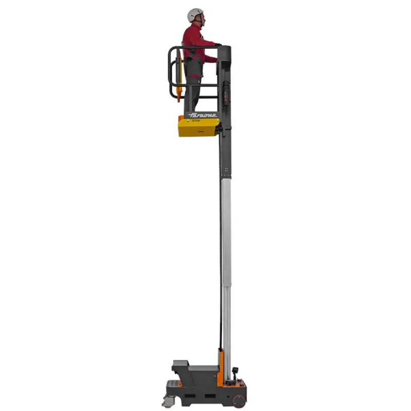 Notre nouvelle nacelle élévatrice, Elevah 6 Move vous permet d’atteindre des hauteurs allant jusqu’à 6 mètres en toute sécurité. Cette plateforme aérienne compacte offre des performances supérieures et une expérience de travail sans précédent. La stabilité est une priorité essentielle pour nous, et c’est pourquoi Elevah 6 Move est conçue avec des matériaux de haute qualité pour garantir une base solide et sécurisée. Son autonomie en hauteur : elle se déplace avec agilité et atteint facilement les points souhaités. Son poids léger de seulement 660 kg facilite son transport et offre une grande flexibilité opérationnelle. Sa stabilité supérieure/, permettant aux opérateurs de travailler en toute tranquillité et confiance, même à de grandes hauteurs. Sa compacité, seulement 110 x 78 cm : cette plateforme convient parfaitement aux espaces restreints et aux environnements à accès limité. Cette plateforme peut confortablement accueillir un opérateur avec sa charge maximale autorisée de 200 kg. Son rayon de braquage nul, une caractéristique unique qui permet une manœuvrabilité facile même dans les espaces les plus étroits. Les opérateurs peuvent naviguer aisément à travers des couloirs étroits et contourner les obstacles, améliorant ainsi l’efficacité du travail et réduisant les temps d’arrêt au minimum. La nacelle est autopropulsée à hauteur maximale.
