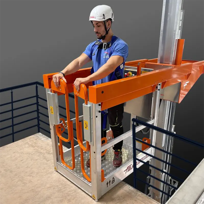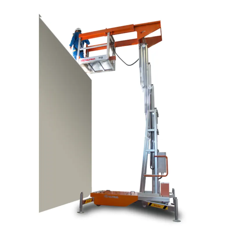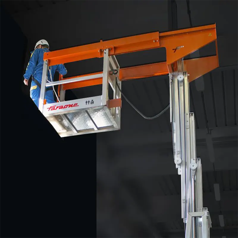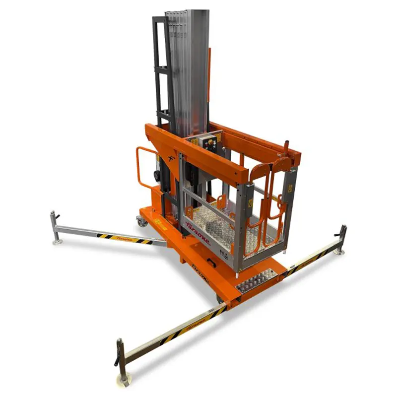 Cette nacelle présente une structure métallique composée essentiellement d’une plateforme fixe, d’un mât vertical et d’un châssis extensible. Avec sa petite surface antidérapante, le panier peut supporter un seul opérateur. Pour garantir la sécurité durant le travail en hauteur, la plateforme est dotée de barrières. Grâce à son mât vertical Toucan, la machine permet d’accéder à des surfaces situées à environ 10 mètres du sol. Lorsque les bras de la nacelle sont déployés et portent en hauteur l’ouvrier, il devient primordial de disposer d’une base stable. C’est pour cette raison que le châssis dispose de stabilisateurs réglables. Vous pourrez allonger les pieds du dispositif au fur et mesure que le mât s’élève pour travailler en parfait équilibre. Plus encore, vous pouvez niveler un pied par rapport à l’autre, ce qui permet d’utiliser la machine même sur un terrain irrégulier.